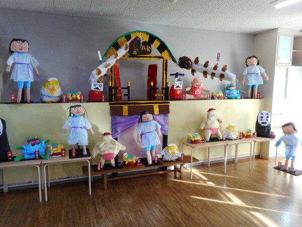 子どもたちは、「すごーい!」と目を輝かせながら作品を見ていました。そして、自分の作品を、得意気にお家の人に教え「上手にできたね」と褒められると、とっても満足そうな子どもたちでした✨今年は、ゲームコーナー(魚つり、わなげ)があり、ゲームを楽しんだ後にはおみやげに折り紙で折った‘ジブリのキャラクター‘をもらい喜んでいました😍