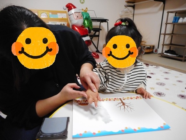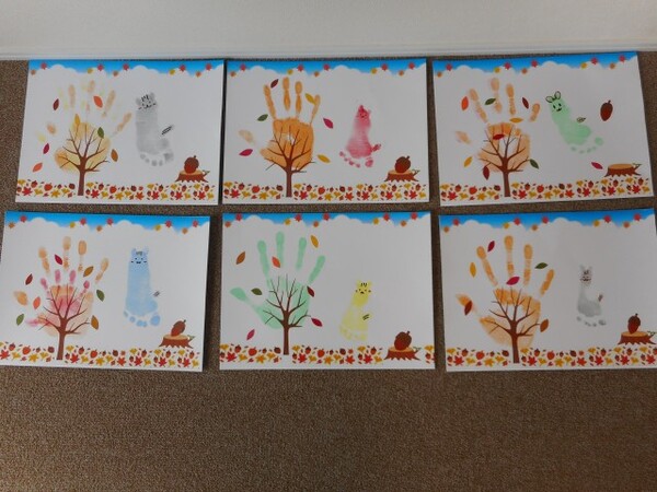 手形足形アートは、お母さんにも協力してもらいました!お母さん達は、センス抜群!とっても素敵に出来上がりました✨